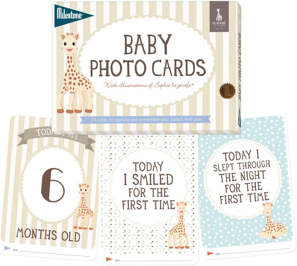 - CAPTURE MEMORIES: Capture your baby’s first year in weeks, months and memorable moments with Sophie the Giraffe Milestone Baby Cards. Add a card and the date to your baby’s pictures to never forget your little one’s memorable moments.